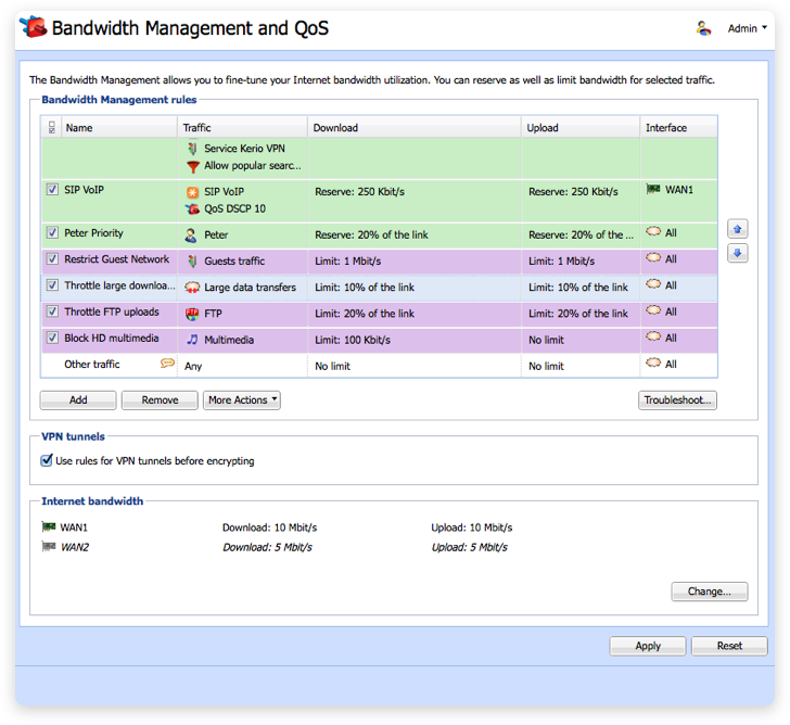 A Kerio Control egy új generációs tűzfal és egységes fenyegetéskezelési (UTM) megoldás kis- és középvállalkozások számára, amelyek átfogó biztonsági megoldást keresnek. Nem csupán egy firewall – a Control hozzáférési routerként (átjáróként) is működhet, amelyet számítógépes hálózatokhoz terveztek, és kiválóan teljesít összetett gerinchálózati struktúrájú, speciális telepítésekben is. Bevezethető szoftveres vagy hardveres formában. A megoldás lehetővé teszi a hálózati forgalom menedzselését az üzletileg legfontosabb forgalomtípusok priorizálásával. Az egyszerű konfiguráció, a magyar nyelvű adminisztráció, az IPS, a beépített AV motor és a WebFilter modul gyors és könnyű hálózatbiztosítást tesznek lehetővé.